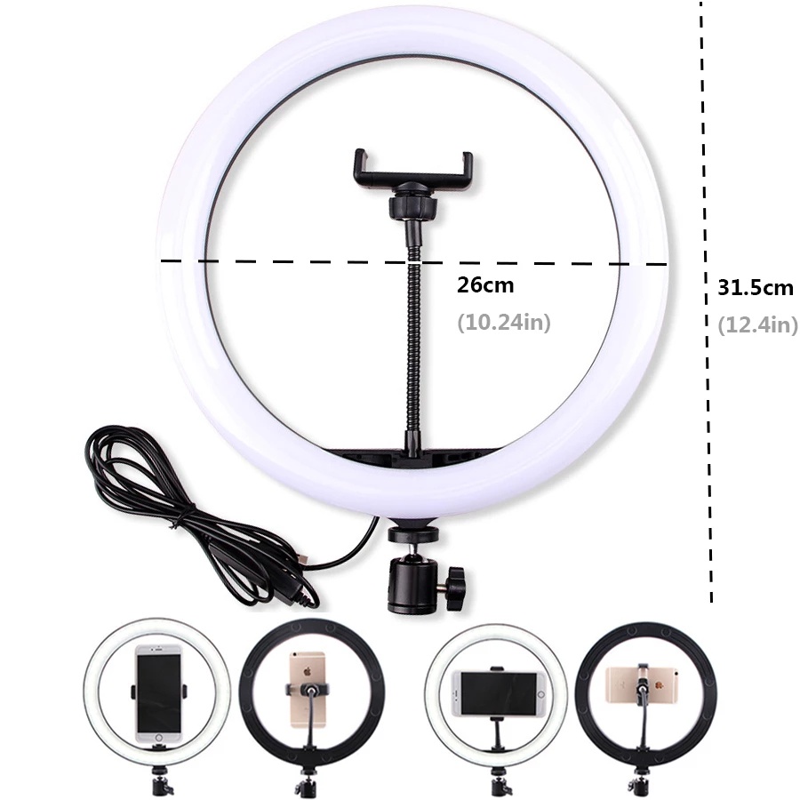 NewTabletop Mounts Holder with LED Ring Flash Light Lamp Tripod Stands with Mobile phones Holder for Live Video Bloggers