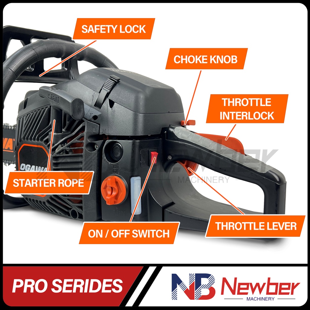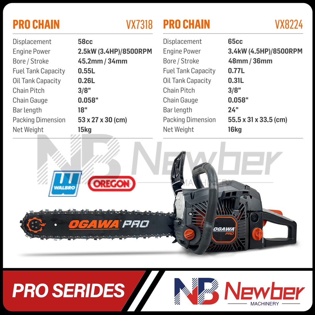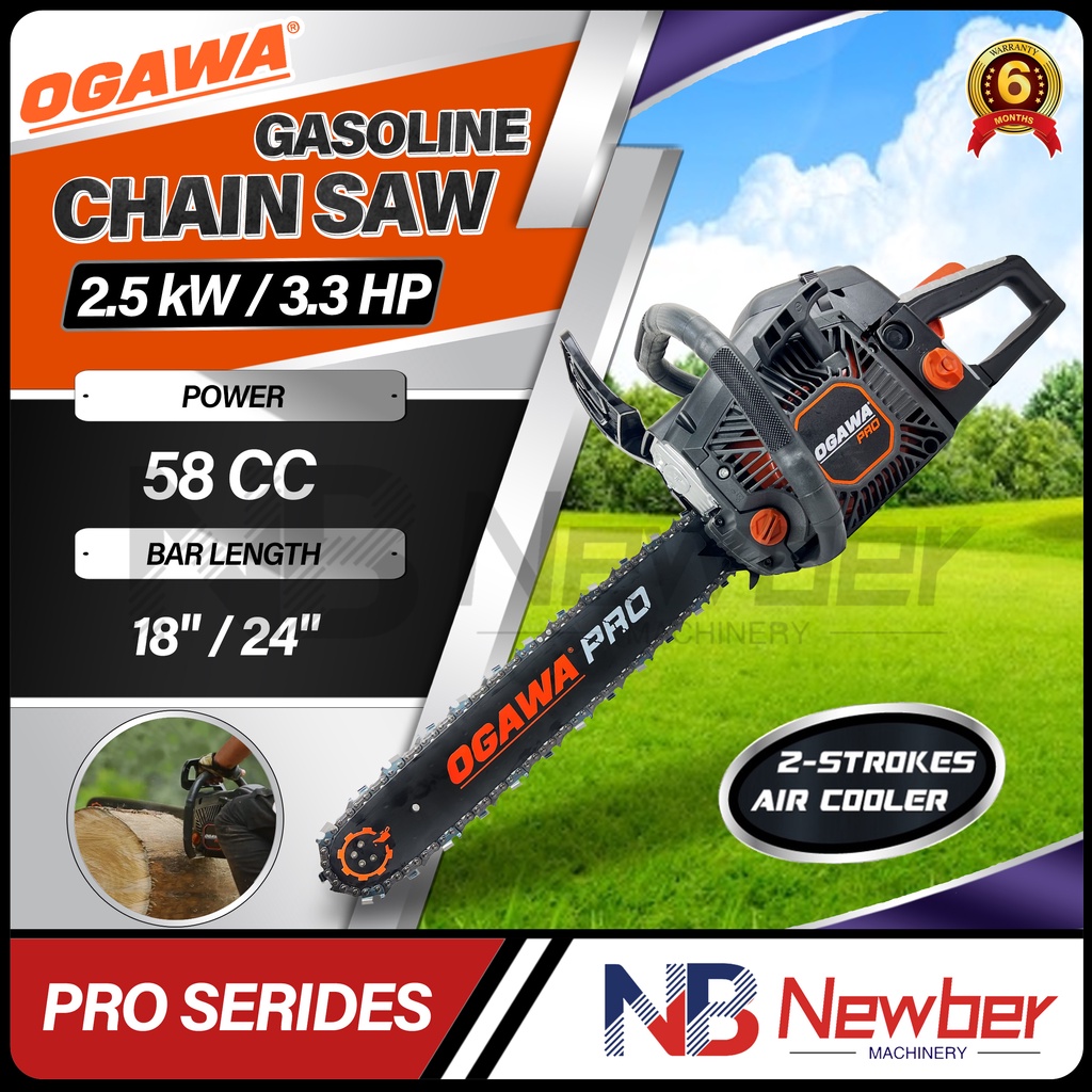 Newber OGAWA PRO SERIDES Gasoline Chain Saw with 18"/24" Guide Bar 2-Stroke ChainSaw Heavy Duty Use (Black)