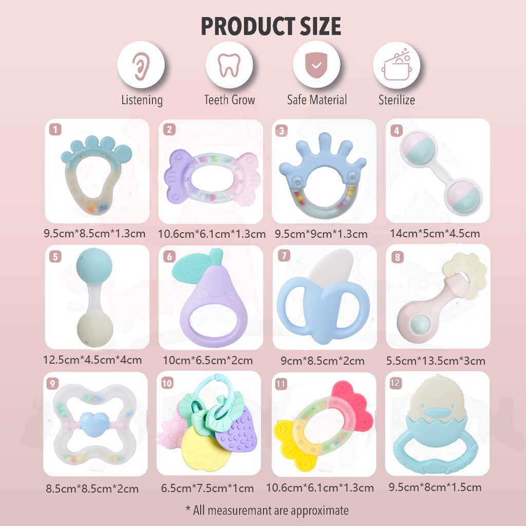 Newborn Baby Teether Toys Early Learning Education Infant Rattle BPA Free Kids Accessories Toy Pacifie Mainan Gigit Bayi