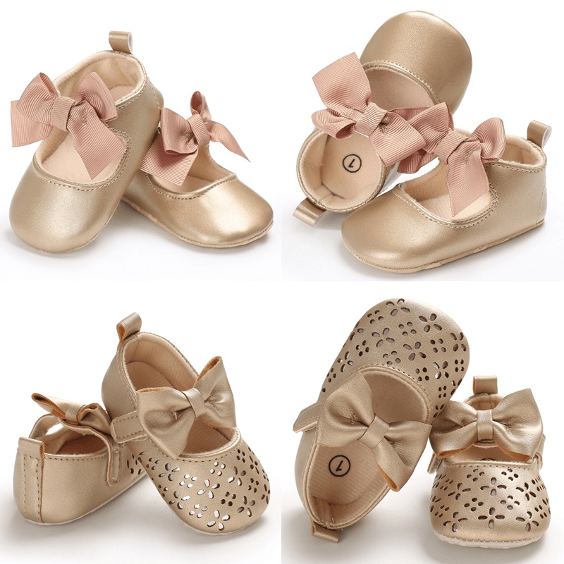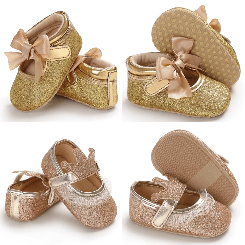 Newborn leather toddler shoes baby girl lovely princess shoes golden soft soled bed shoes baptism