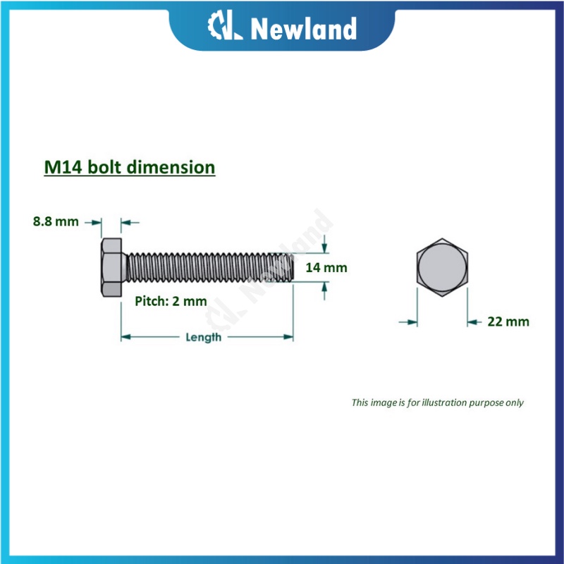 Newland Agriculture M14 Bolt and Nut - Grade 8.8 Hex Bolt Full Thread / Nut / Skru / Screw / Spring Washer / Flat Washer