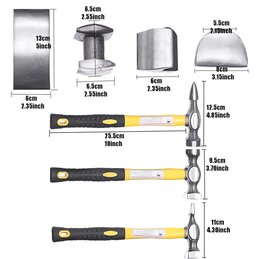 Niceman 7pcs Fiberglass Auto Body Repair Tools Fender Tool Kit Hammer Dolly Dent Bender 7Pc Heavy Duty