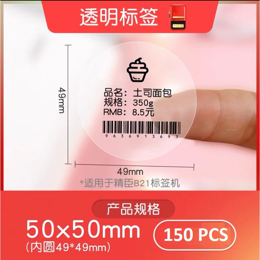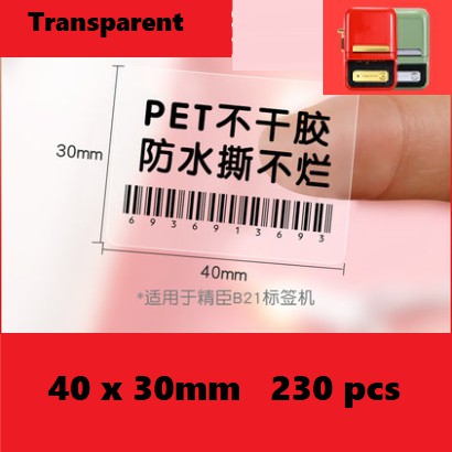 Niimbot B21 /B1/B203 Label Sticker Paper Roll Jing Chen for B21 Label Printer - Transparent