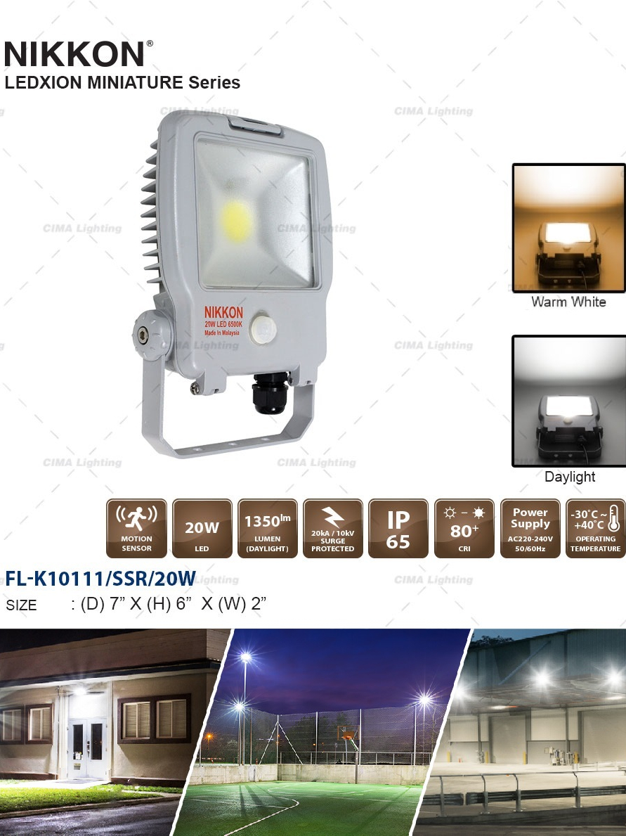 Nikkon LEDXion K10111 20W Miniature LED Flood Light c/w Motion Sensor [SJ MALL] "LIGHTING"