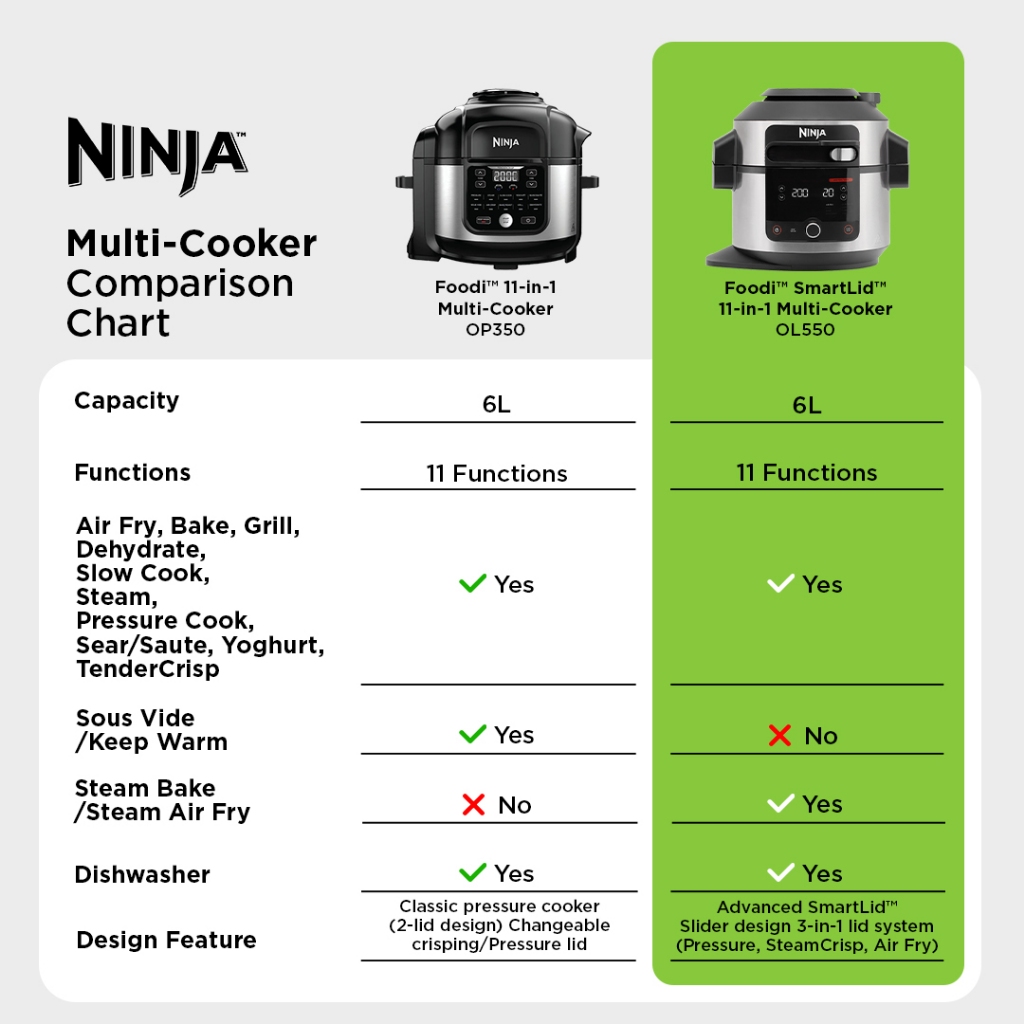 Ninja Foodi 11 in 1 SmartLid Multi cooker in one pot with 6L Capacity and Recipe Book - Ninja OL550