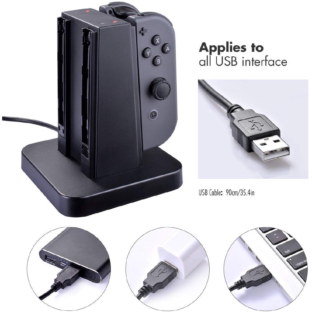 Nintendo Switch Joy Con Charger Dock, 4 in 1 Charging Stand with LED indication