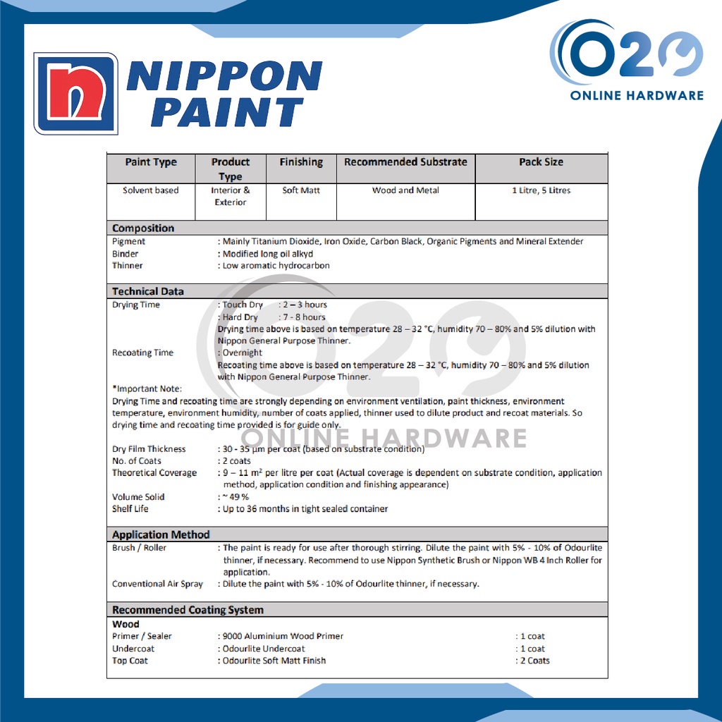 Nippon Paint Odourlite Soft Matt Paint Painting Low Odour Acrylic Paint Paint For Wood And Metal Cat Black Colour 5L