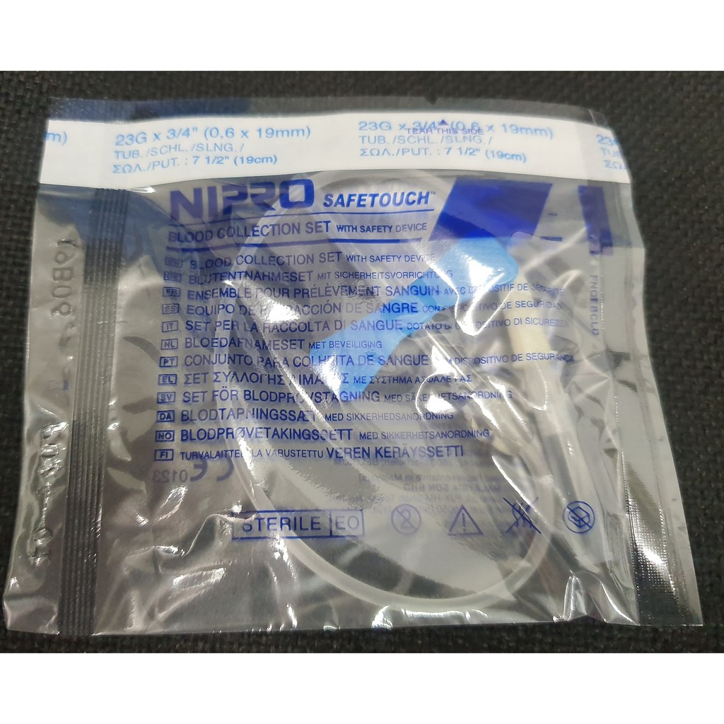 Nipro Safetouch Blood Collection Set 23G x 3/4" (19mm) Inclusive Luer Adapter and Tube Holder (10pcs/pack)
