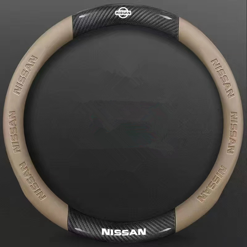 Nissan car Carbon Fiber Leather Steering Wheel Cover Almera Livina March Sentra Teana Tiida X-Trail Kicks Navara Nissan logo steering wheel Cover
