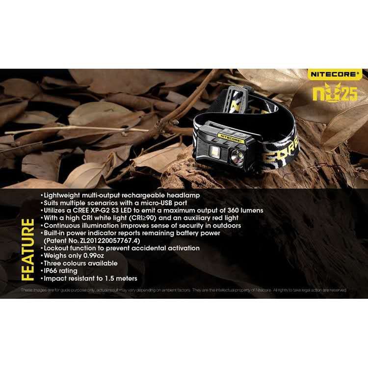 Nitecore NU25 360 Lumens NU25 UL 400 Lumens CREE XP-G2 S3 LED Light micro USB Rechargeable Headlamp