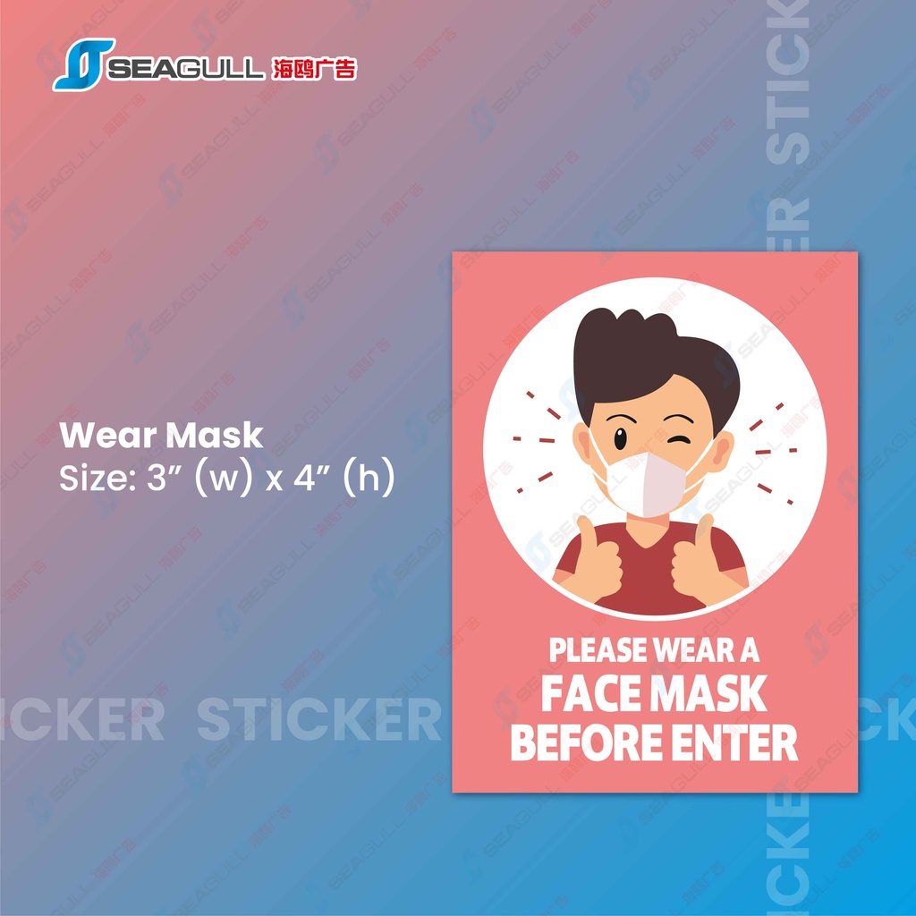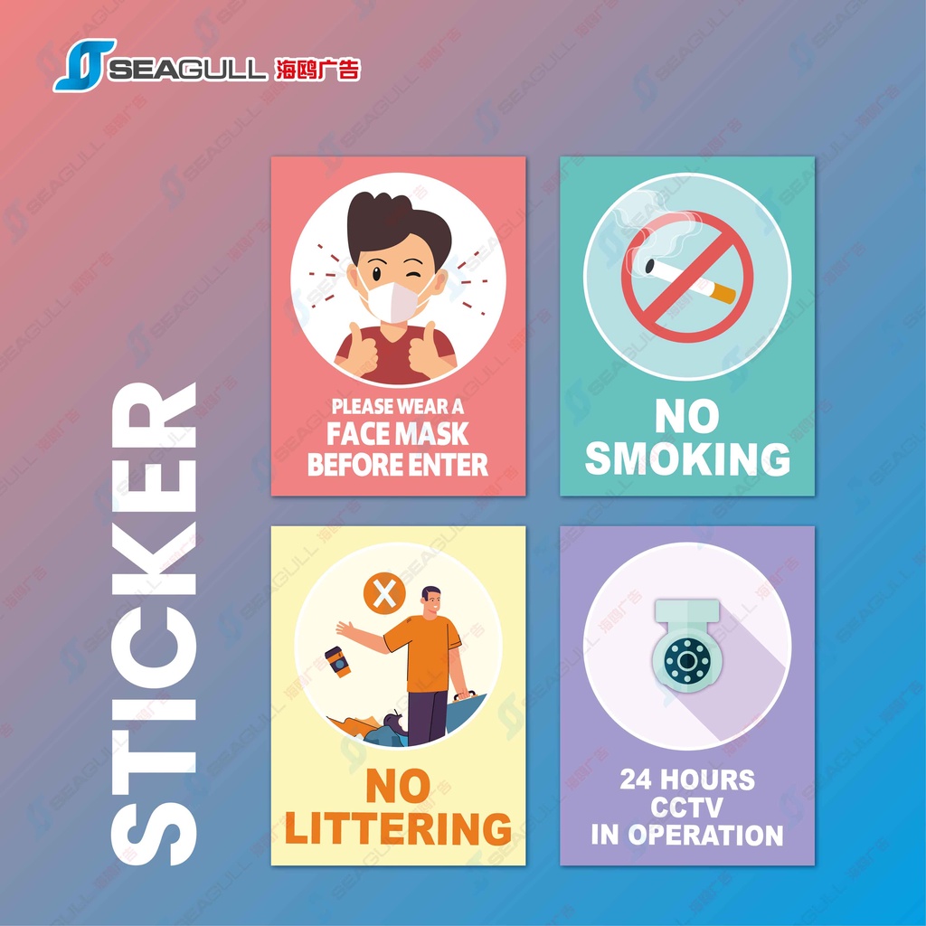 No Smoking No Littering 24 Hours CCTV in Operation Sticker SOP Sticker Sign Wear Face Mask