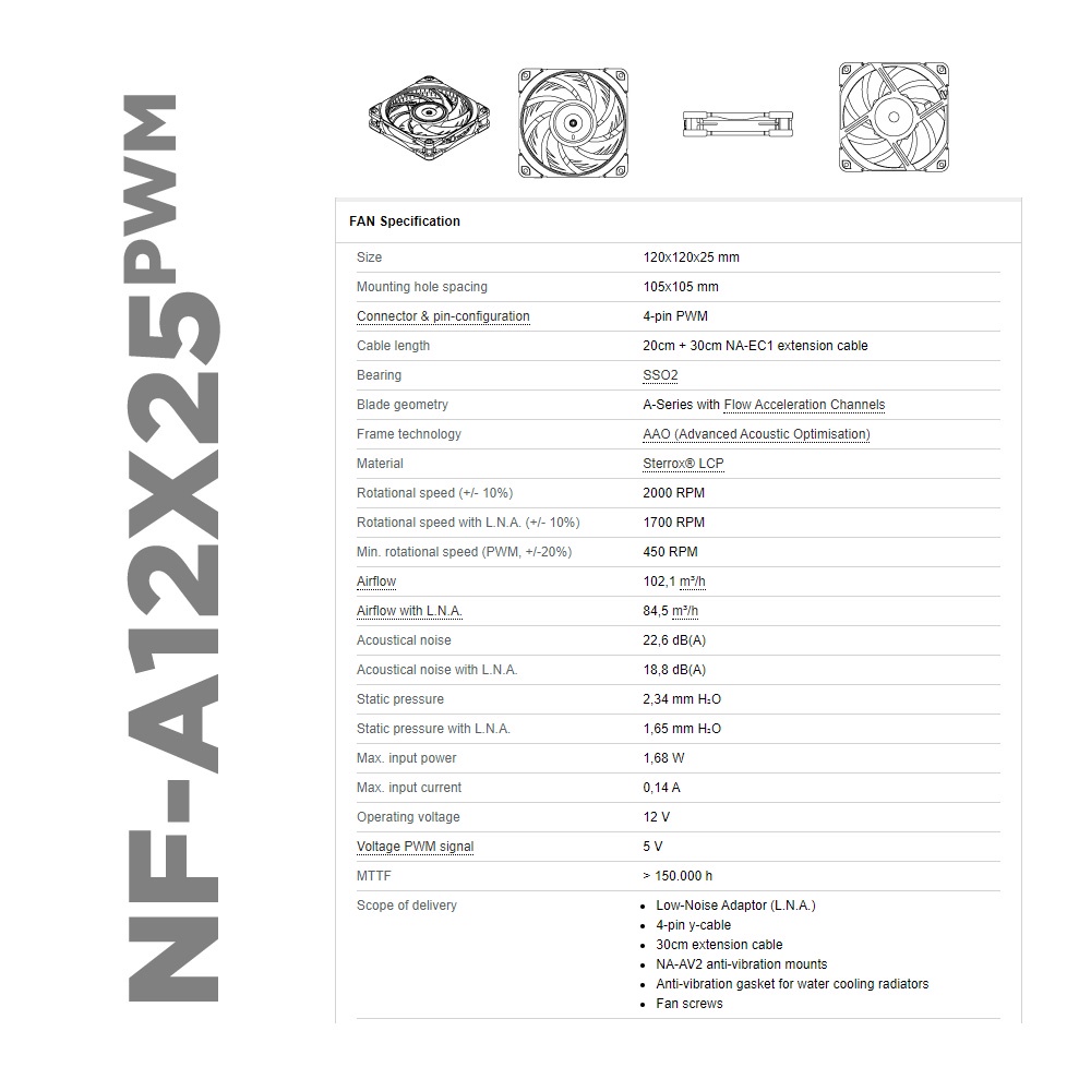 Noctua NF-A12X25 PWM - Computer Case Cooling Fan 120mm / 12cm with PWM