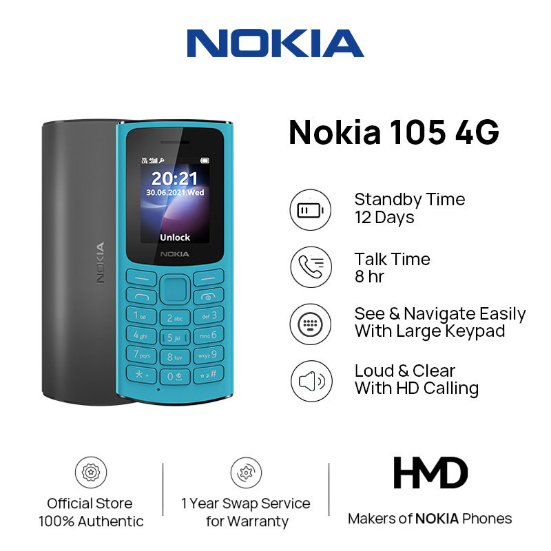 Nokia 105 2G/4G Keypad Basic Phone 1.8'' Screen Dual Sim 22 Days Long Standby 1 Year Warranty