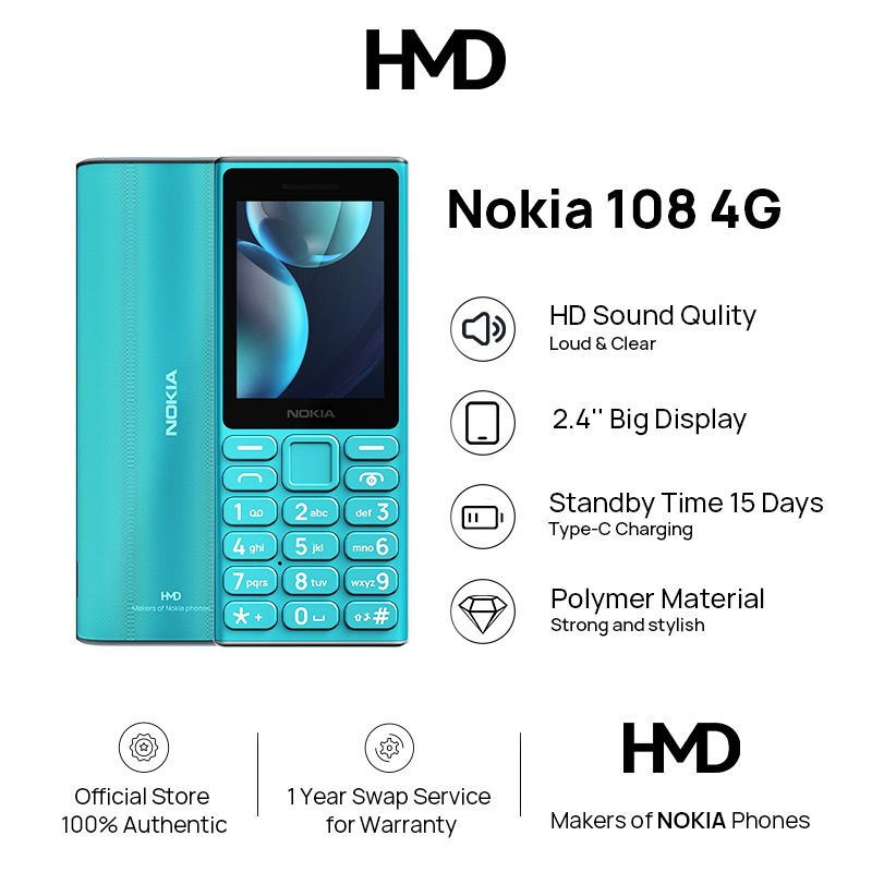 Nokia 108/105 4G Keypad Basic Phone 2.4'' Display Dual Sim 1450mAh Durable Design 1 Year Warranty