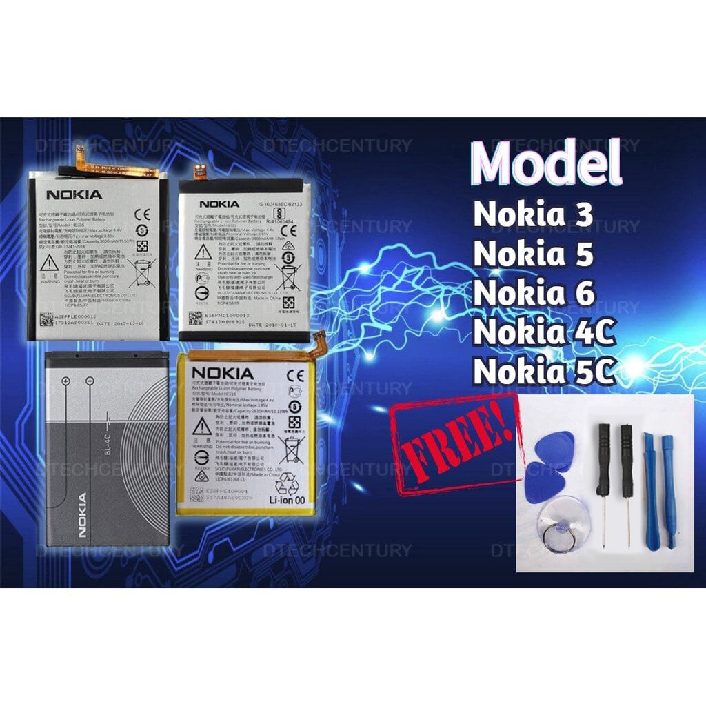 Nokia 3 Nokia 5 Nokia 6 Nokia 4C Nokia 5C Battery Bateri