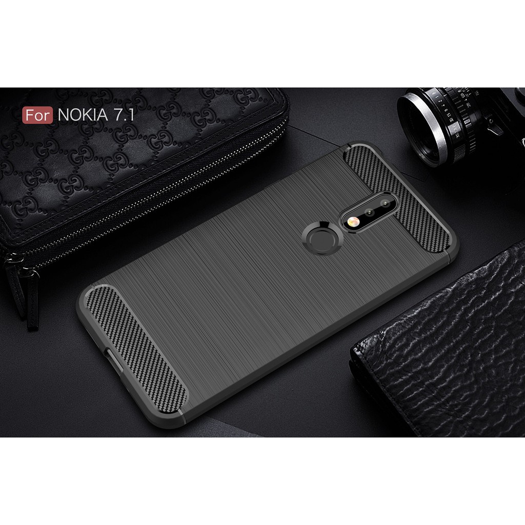 Nokia 7 Plus 6.0 Inch Shockproof Carbon Fiber Case Silicone Rubber Cover Casing Brushed Texture Nokia 7+