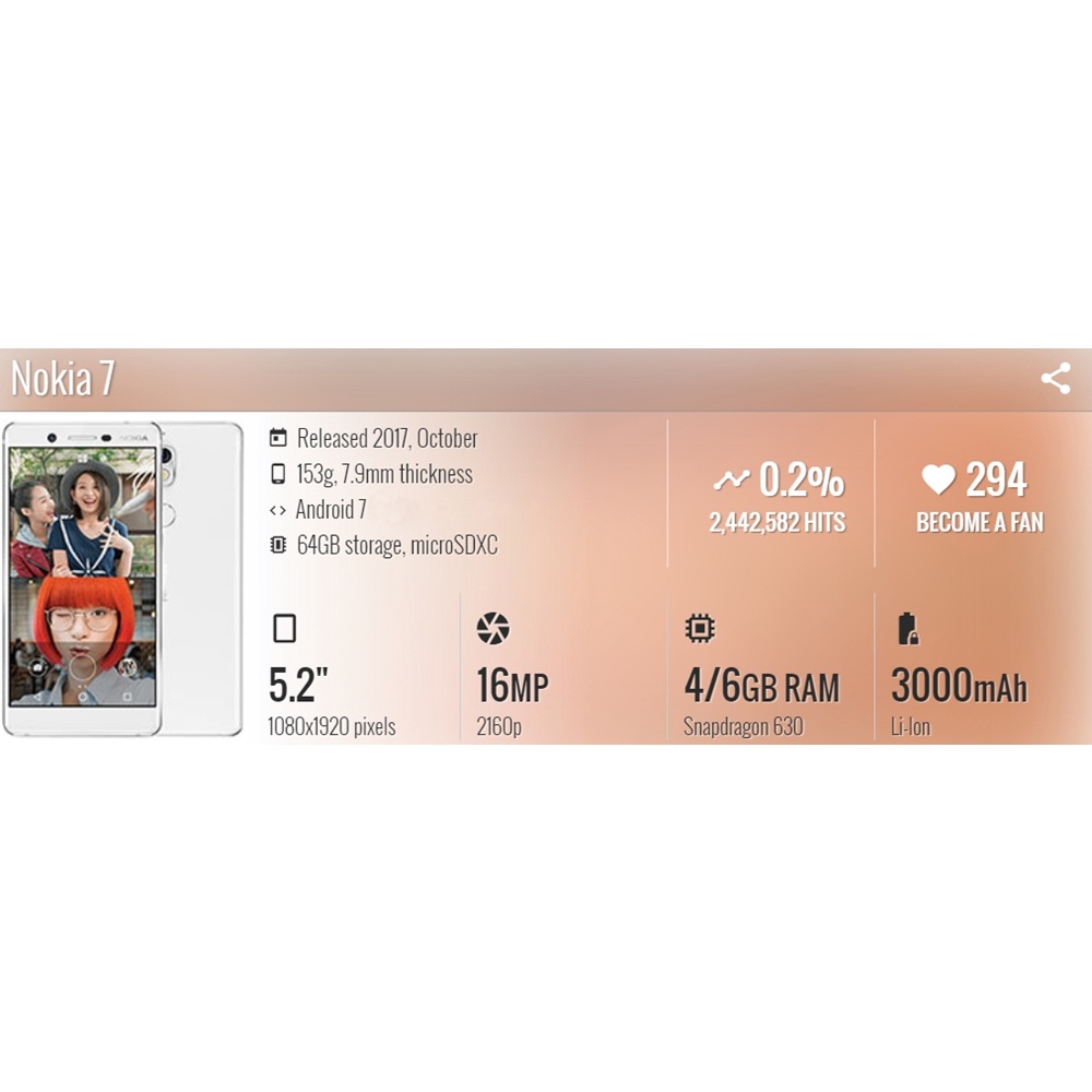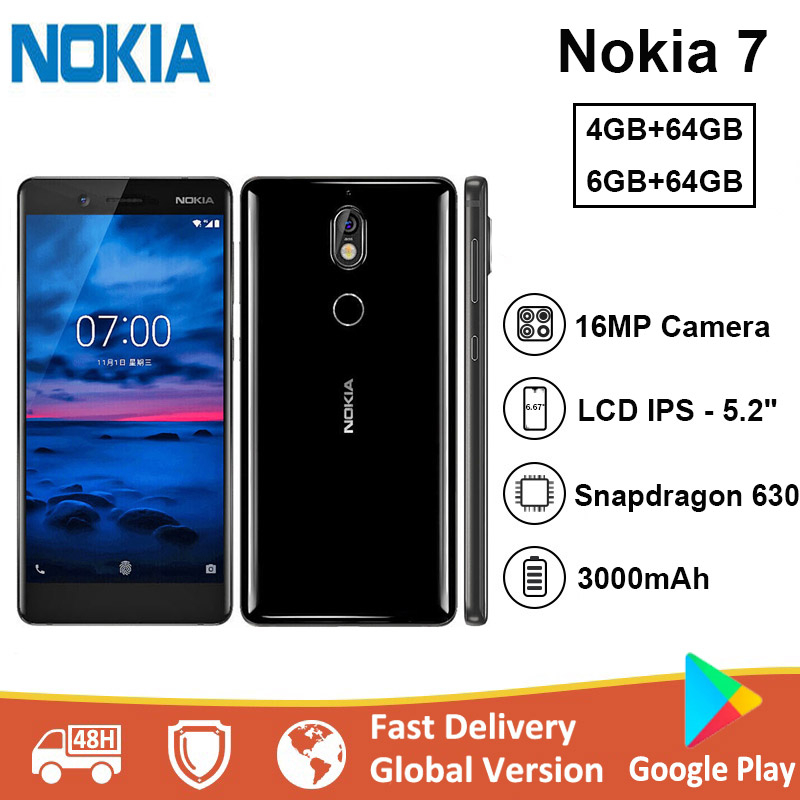 Nokia 7 Smartphone Snapdragon 630 Cellphone 5.2 Inches 4GB RAM 64GB ROM 16MP Camera Android Mobile Phone Fingerprint 99% New Used