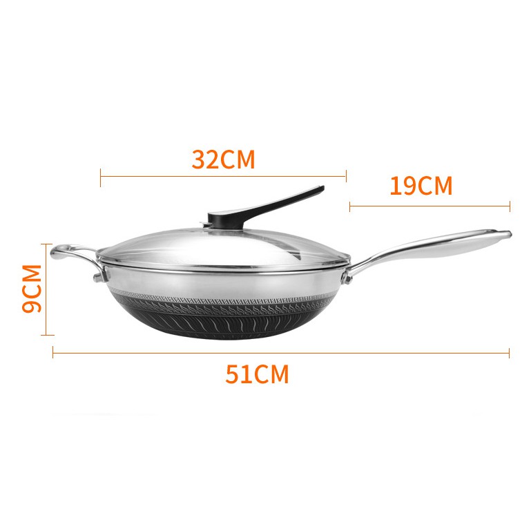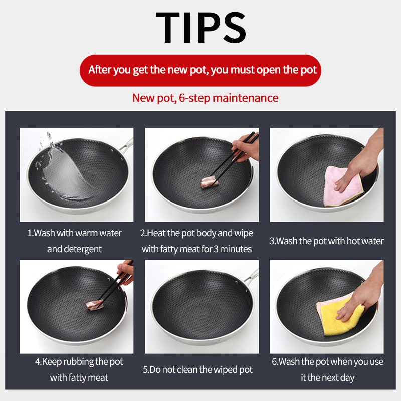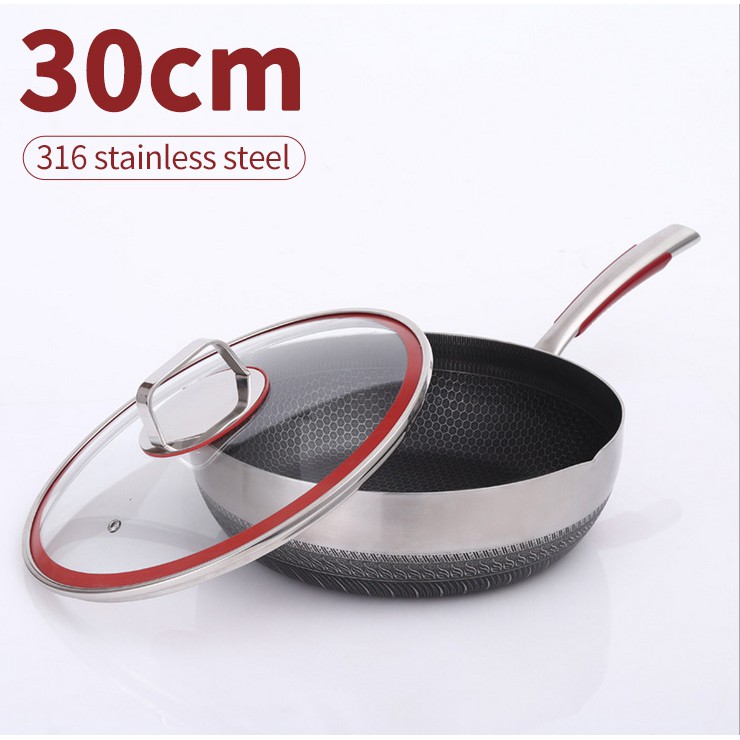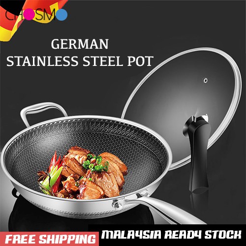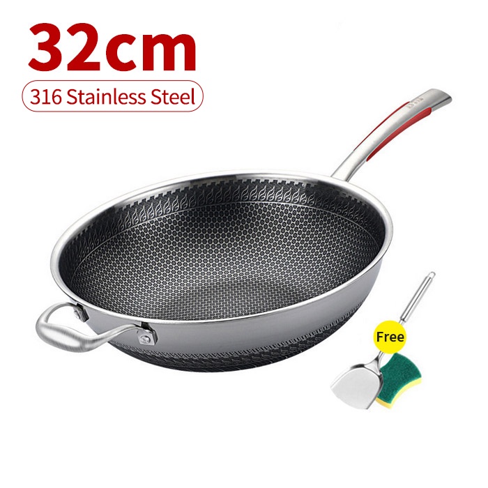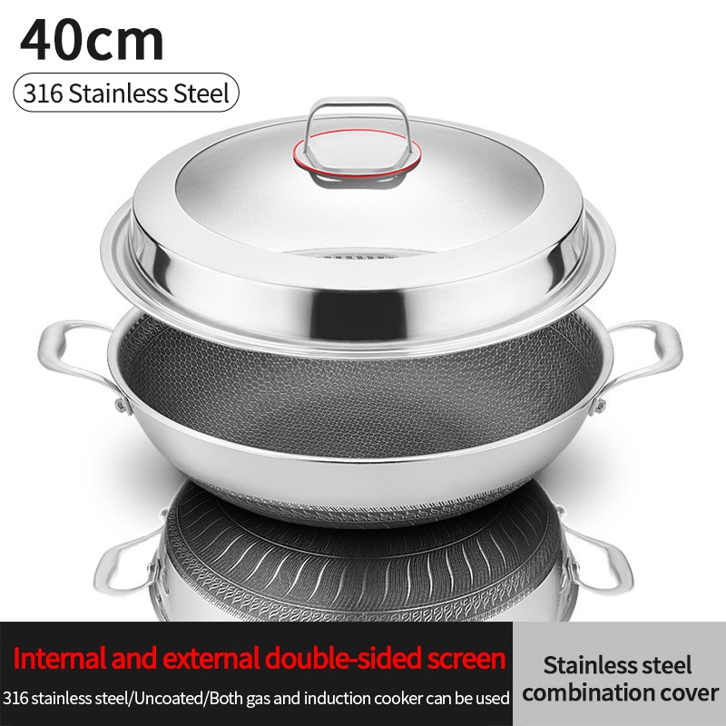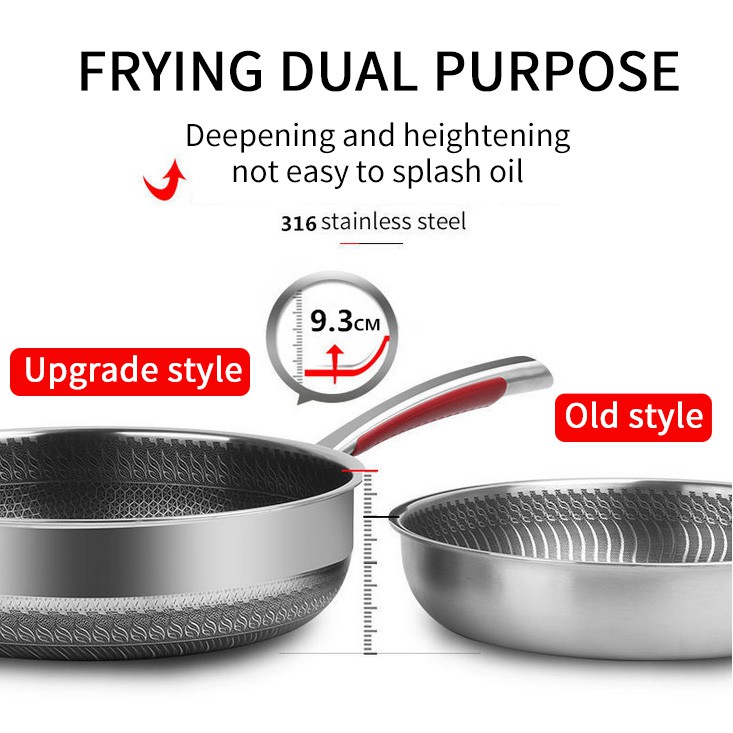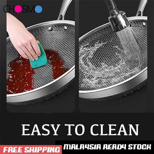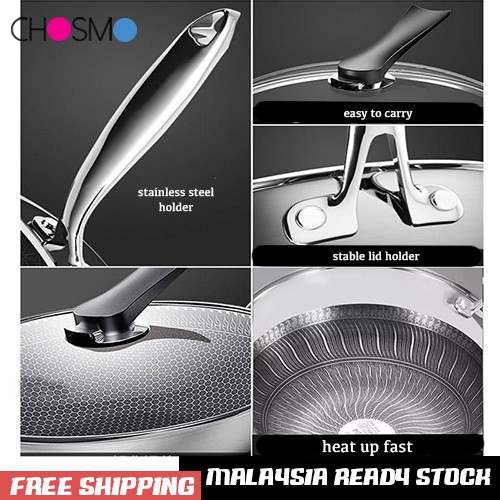 KATA Non-stick Wok 316 Stainless Steel Kuali Honey Comb Double Full Screen Pan No Coating Wok