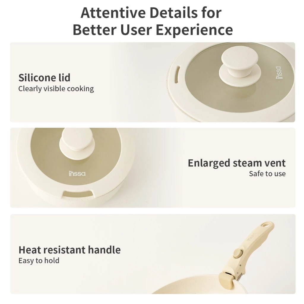 Nonstick Ceramic Rock Cookware Set Handle Removable No PFAS& PTFE& PFOA Non Stick Pan Suitable for All Stoves