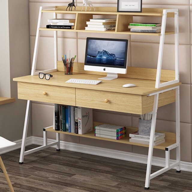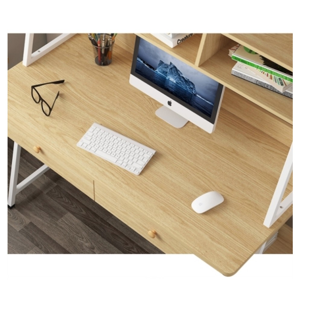 Nordic Design Wooden Study Table Computer With Storage and 2 Drawers Desk PC Laptop Table Workstation Study Home Office