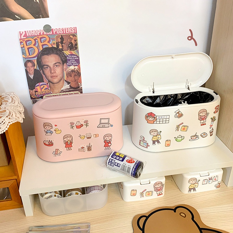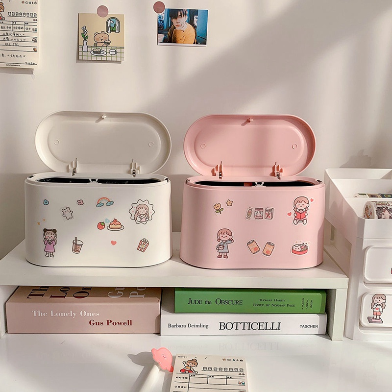Nordic Desktop Trash Can Push-on Design Mini Desktop Dustbin Household Bedside Coffee Table Kitchen Small Trash Can