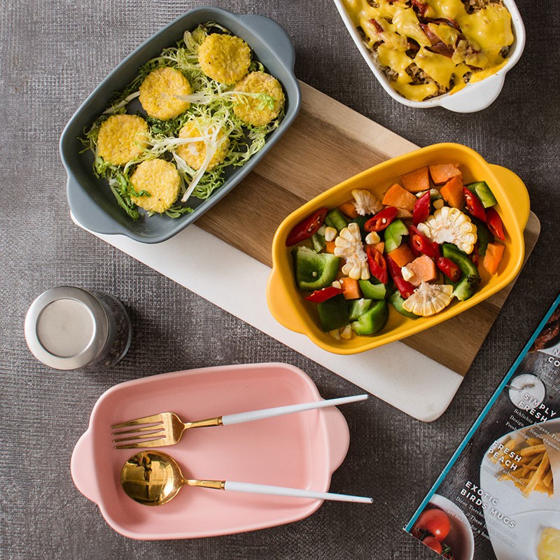 Nordic Matte Ceramic Plate Household Tableware Baking Dish Binaural Oven Plate Cheese Plate Dinner Deep Ceramic Plate J