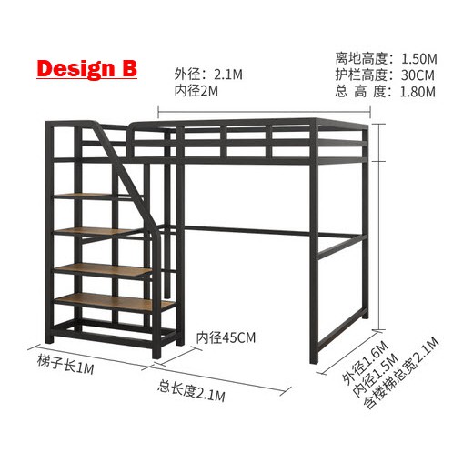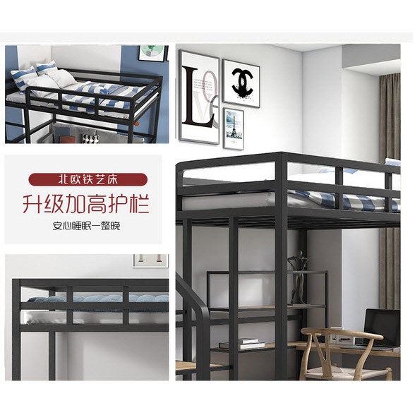 Nordic Metal Loft Bed Frame Double Decker Elevated Single Double Bed Space Saving Katil Besi Loteng (1 month pre-order)