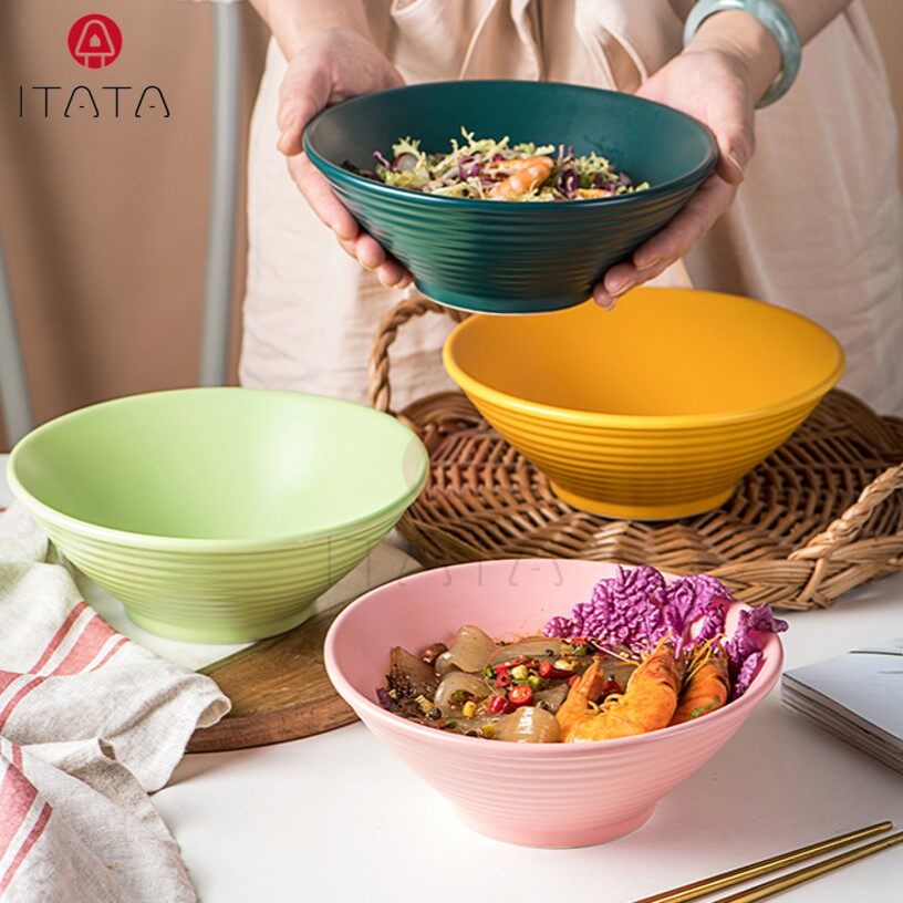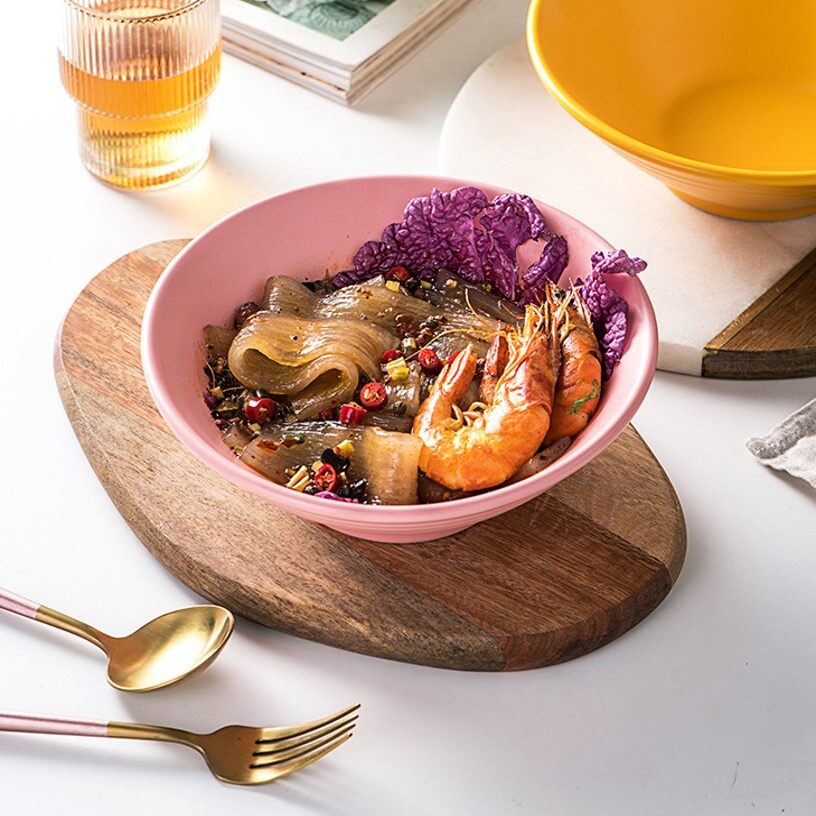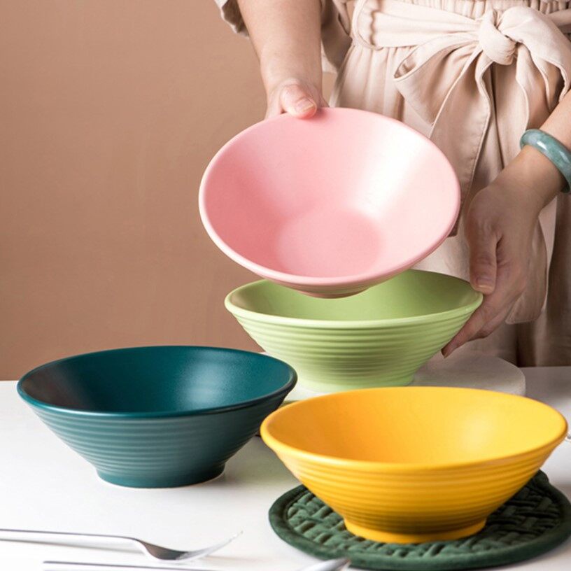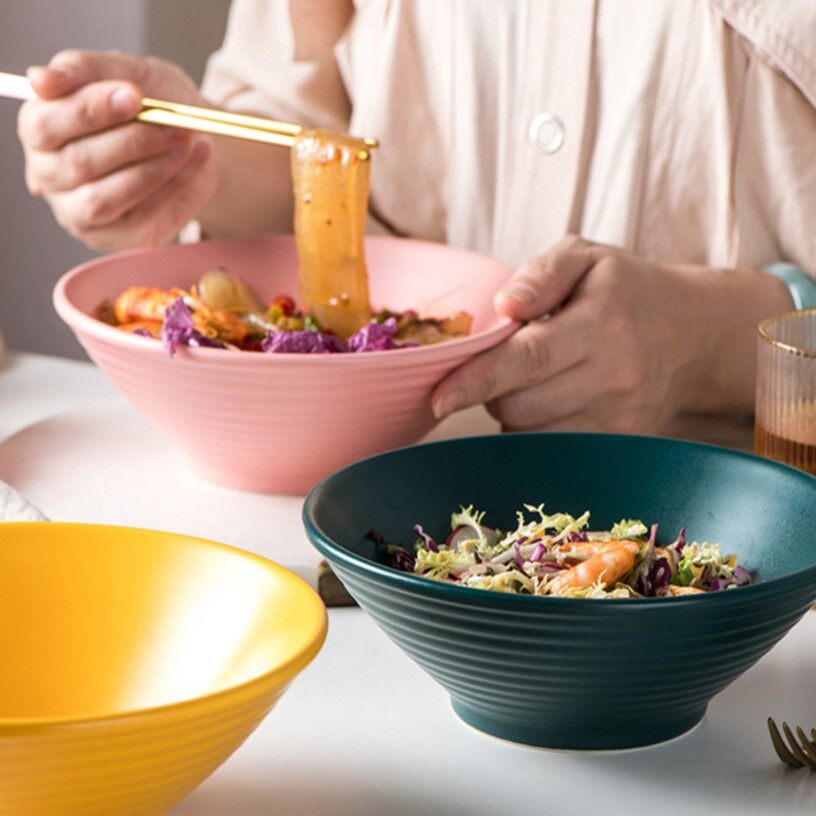 Nordic Style Ceramic 20cm Stripes Ramen Bowl Cookware Soup Noodle Pasta Microwave Oven