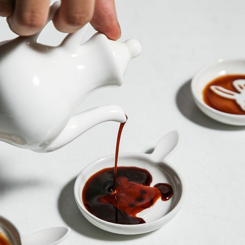 Nordic Style Ceramic 3D Cartoon Embossed Sauce Plate Soy Plate Vinegar Seasoning Saucer (Random Design)