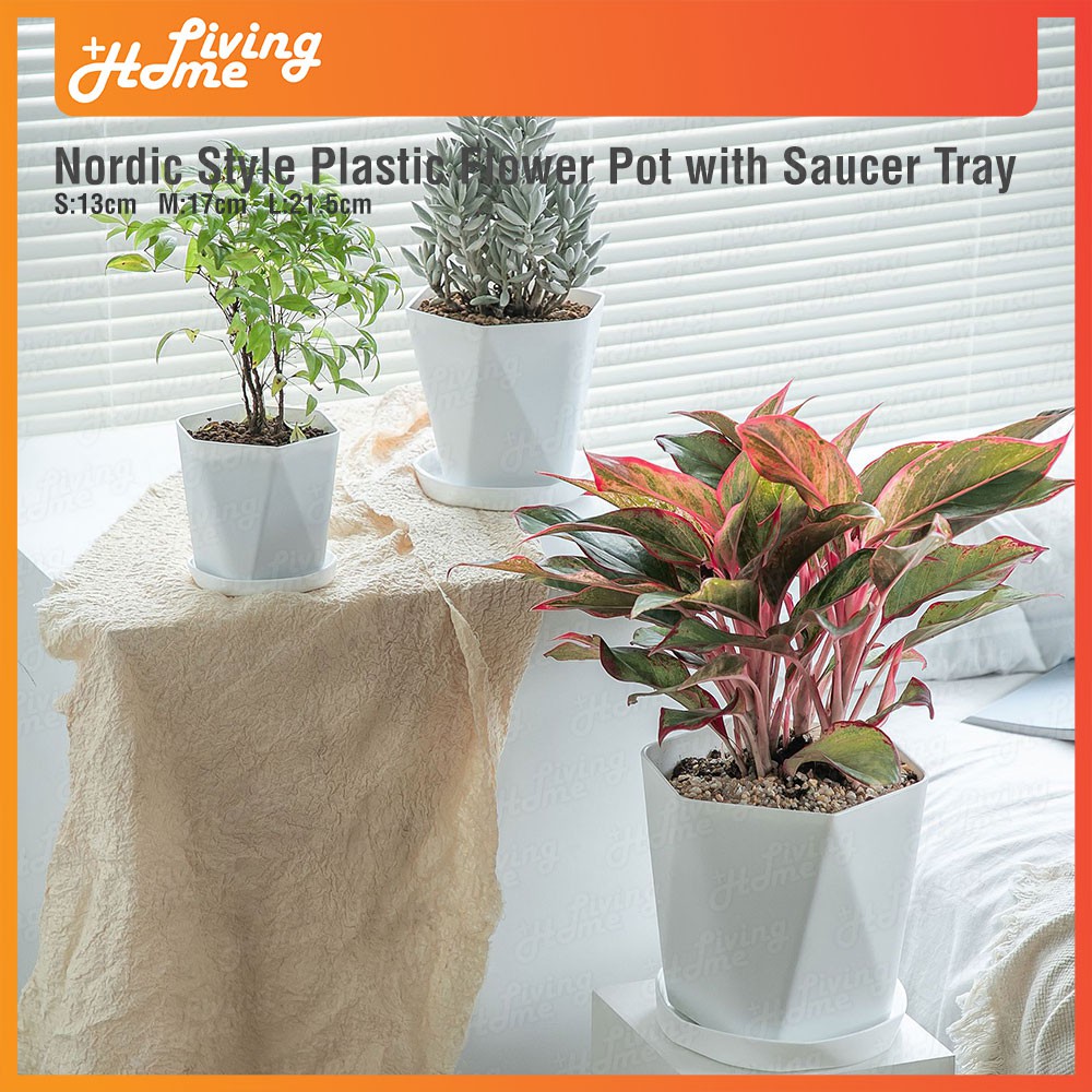 Nordic Style Plastic Nursery Flower Pot & Saucer Tray Pasu Bunga Plastik Nordik Piring Pasu Pelapik