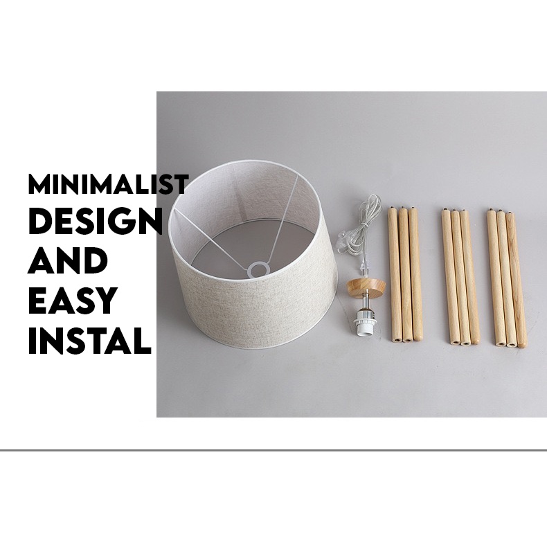 Nordic Wood Tripod Floor Lamp LED Bulb Standing Light Living Room Bedroom Lampu Hiasan Ruang Tamu