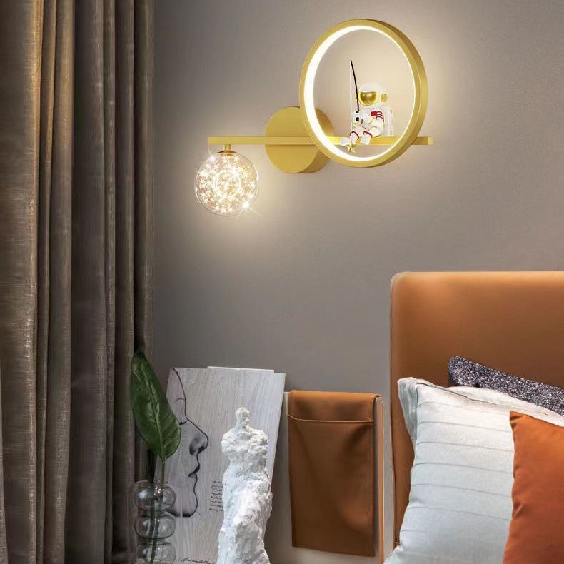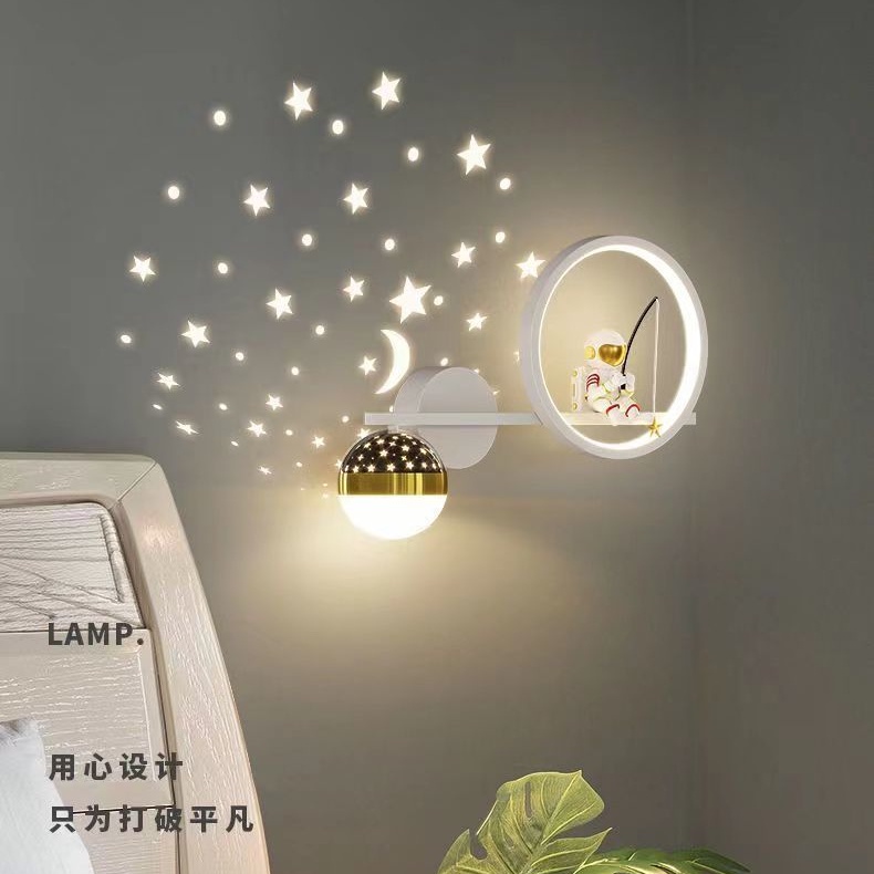 Nordic lamp bedroom bedside lamp bedroom wall lamp Astronaut Designer Spaceman Moon Children's Room Small Wall Lamp bedside creative lamp