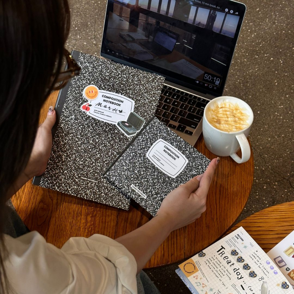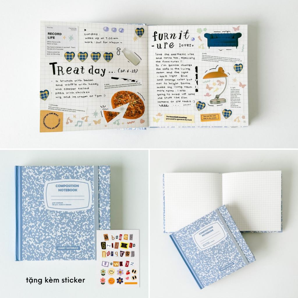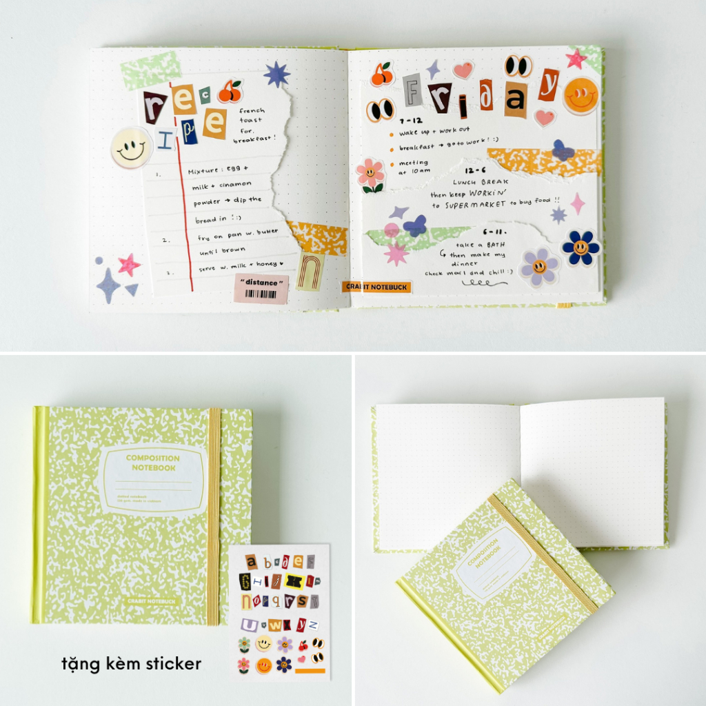 Notebook 200 300 500 square dot grid pages with free Crabit Composition sticker