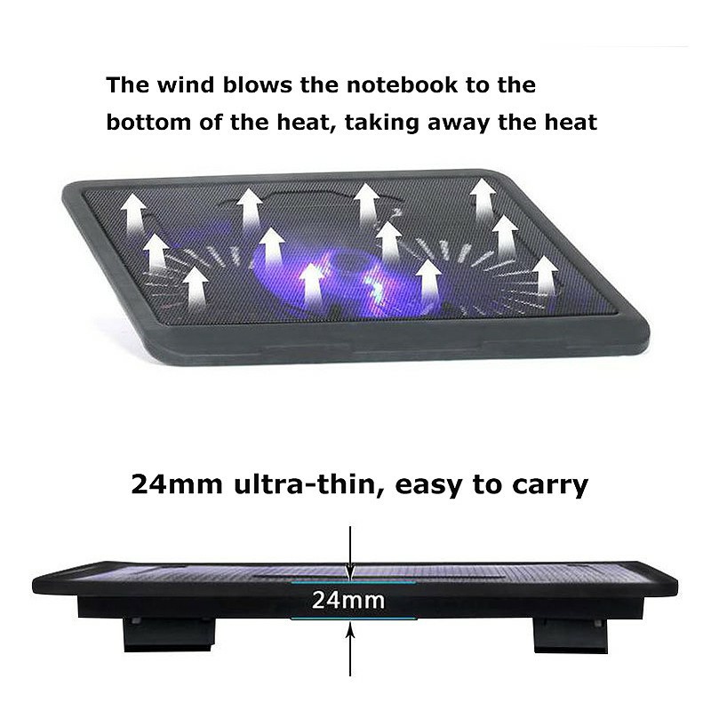 Notebook cooling pad laptop cooler with blue LED light support up to 17" / kipas penyejuk laptop