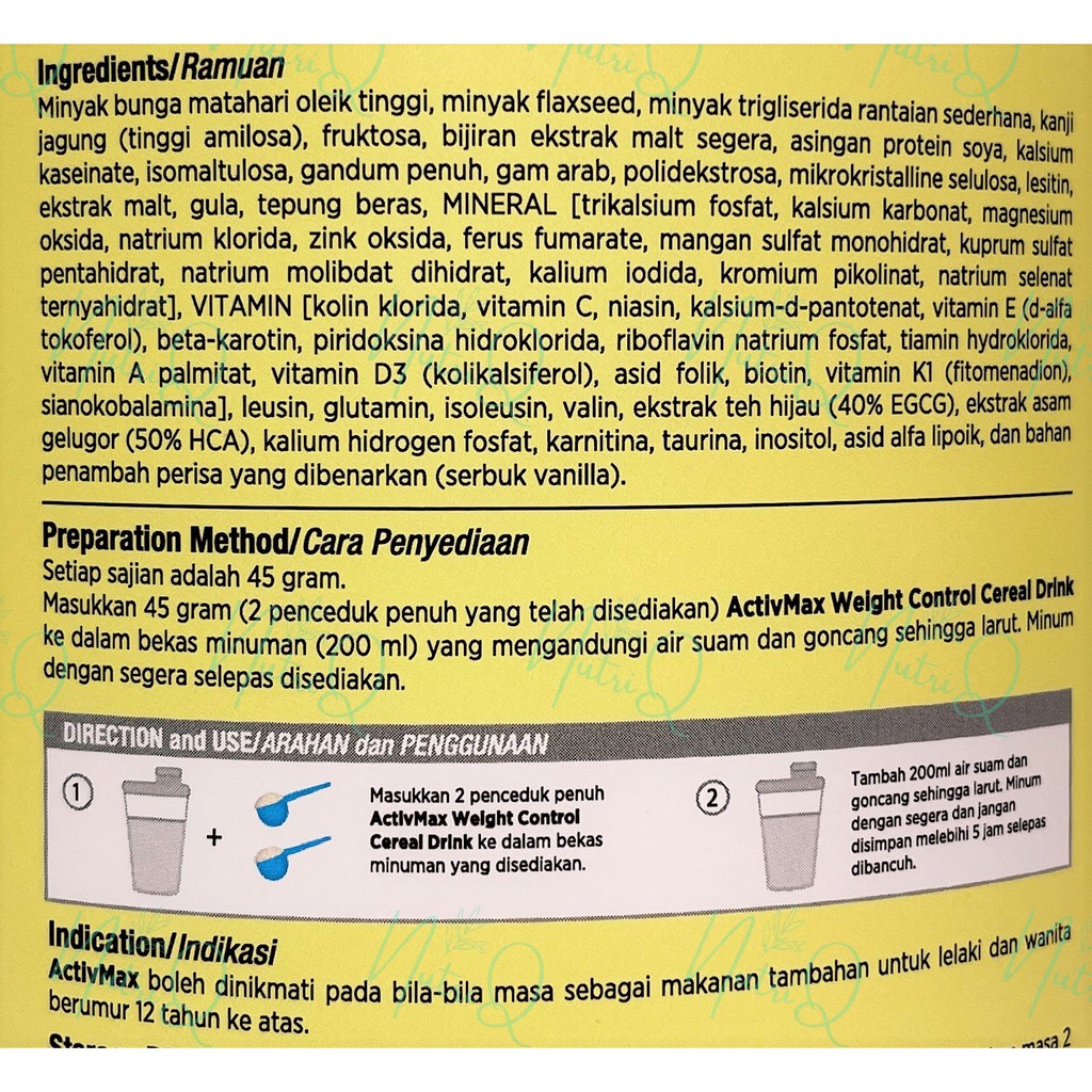 Nova Activmax Weight Control Cereal Drink (Slimming Weight Management) (with Wheat Cereal)