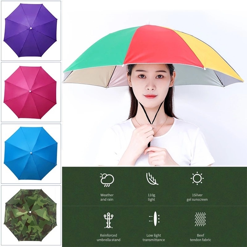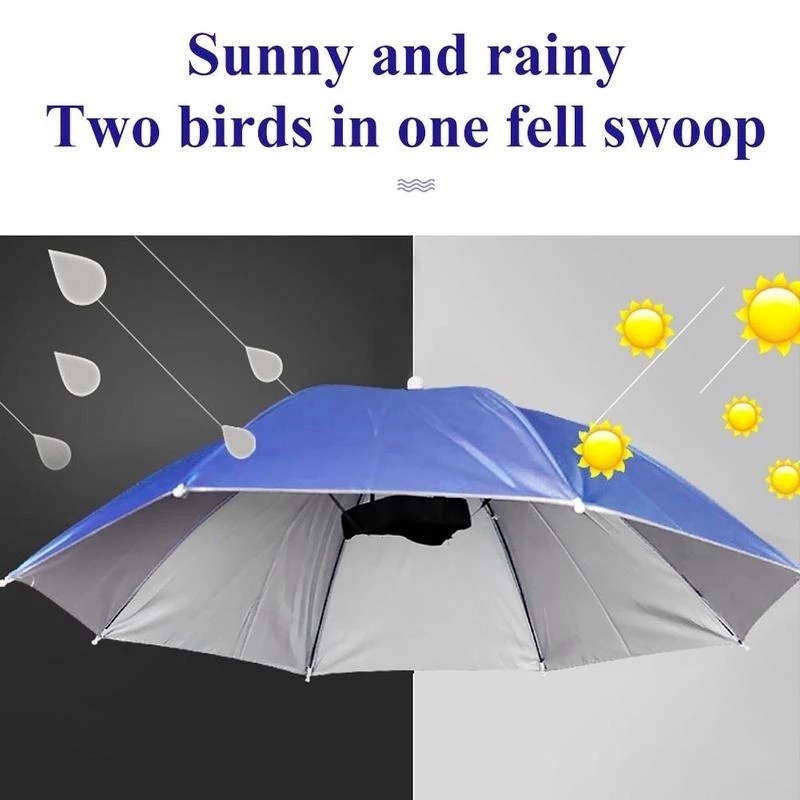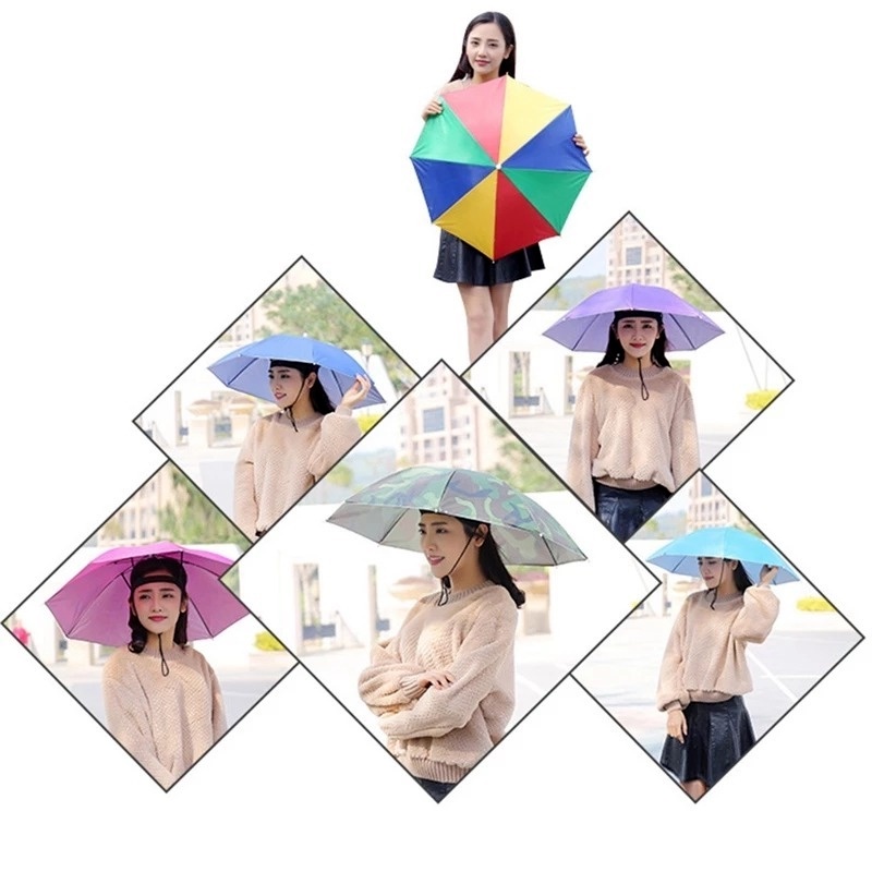 Novelty Sun Rainy Day Hands Free Foldable Headwear Umbrella Hat/ Adjustable Elastic Band Outdoor Anti-Rain Umbrella Hat Rain Gear