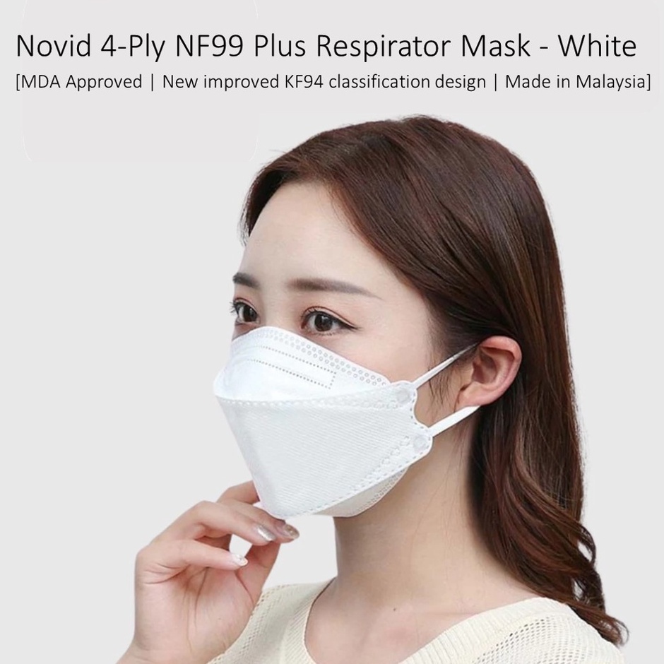 Novid 4-Ply NF99 Plus Respirator Face Mask -White -20pcs/box (*MDA Approved *New improved KF94 design *Made in Malaysia)