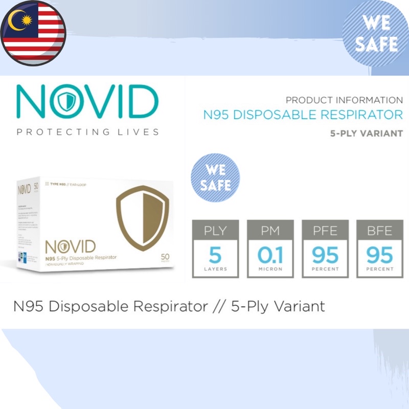 Novid N95 5-Ply Medical Face Mask Ready Stock (Individual Pack) 50Pcs/box