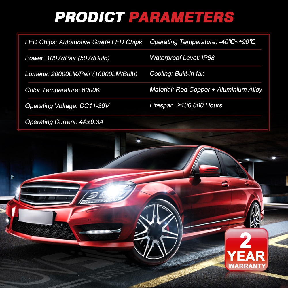 Novsight H7 F06 Car LED Headlight 100W 20000LM 6000K