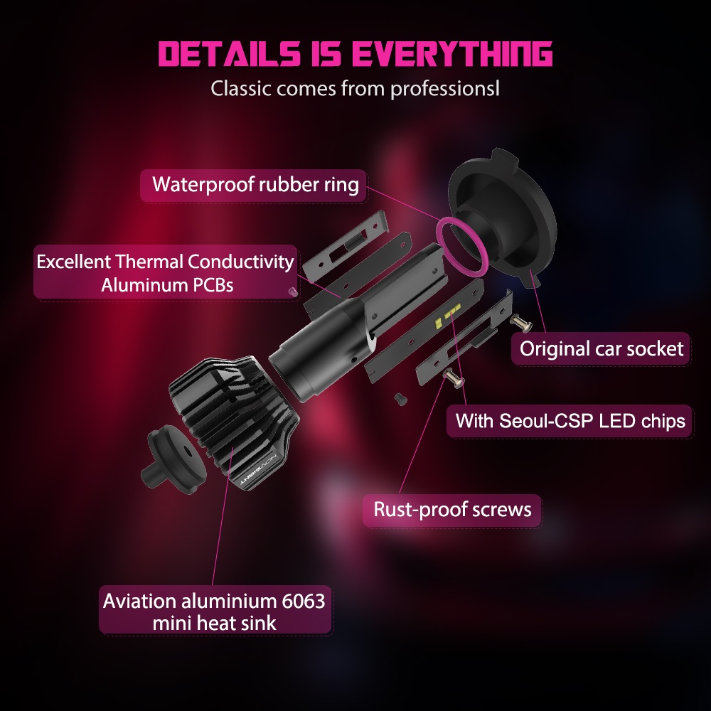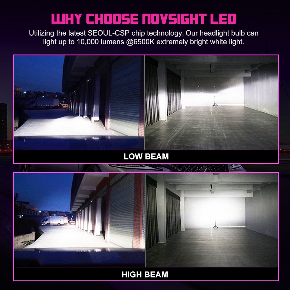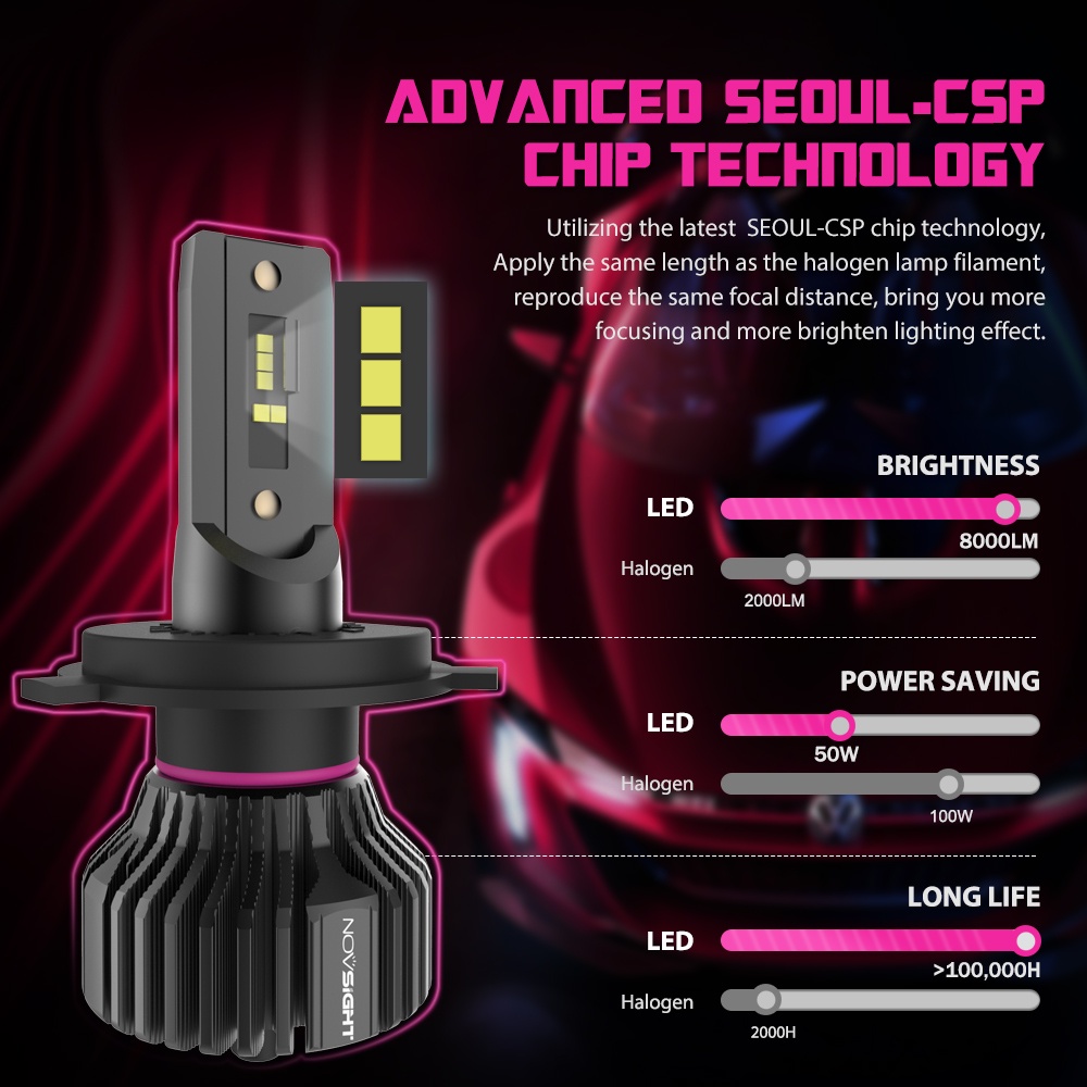 Novsight N31 H4 LED motorcycle headlight car headlights High&Low Beam Fanless Light bulb 6500K 50W 10000LM a pair
