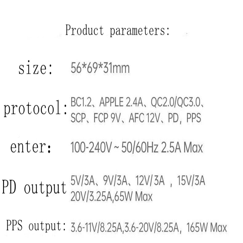 Nubia 165W Gan Power Charger 165W Quick Charger Power Adapter with 6A/9A Date Cable