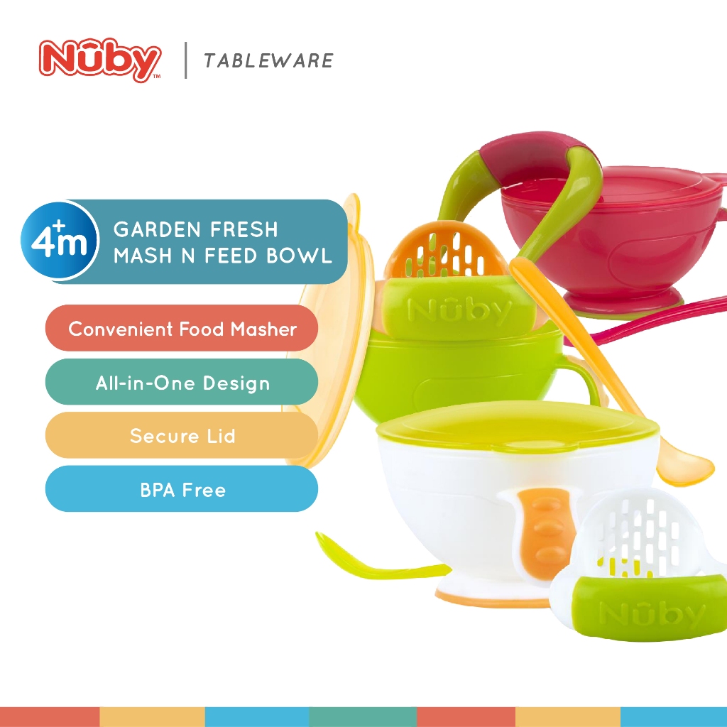 Nuby Garden Fresh Mash N Feed Bowl Set with Lid, Spoon & Food Masher NB5435 (6m+) | Set Penyediaan Makanan Bayi