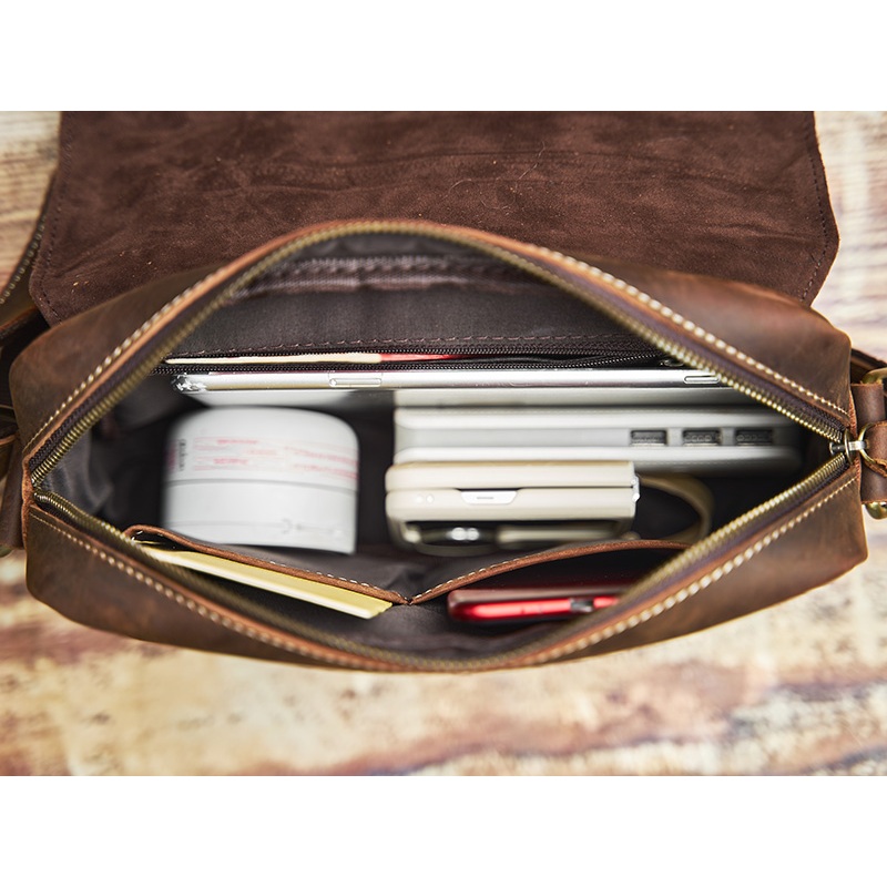 Nupugoo Genuine Leather Messenger Bag Retro Simple Small Backpack First Layer Cowhide Messenger Bag Preppy Style
