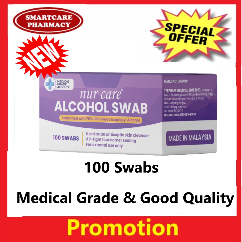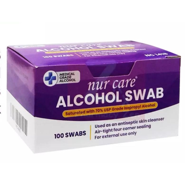 Nur Care Alcohol Swab 100's (Medical Grade)- 70% alcohol base-Suitable to sanitize hand