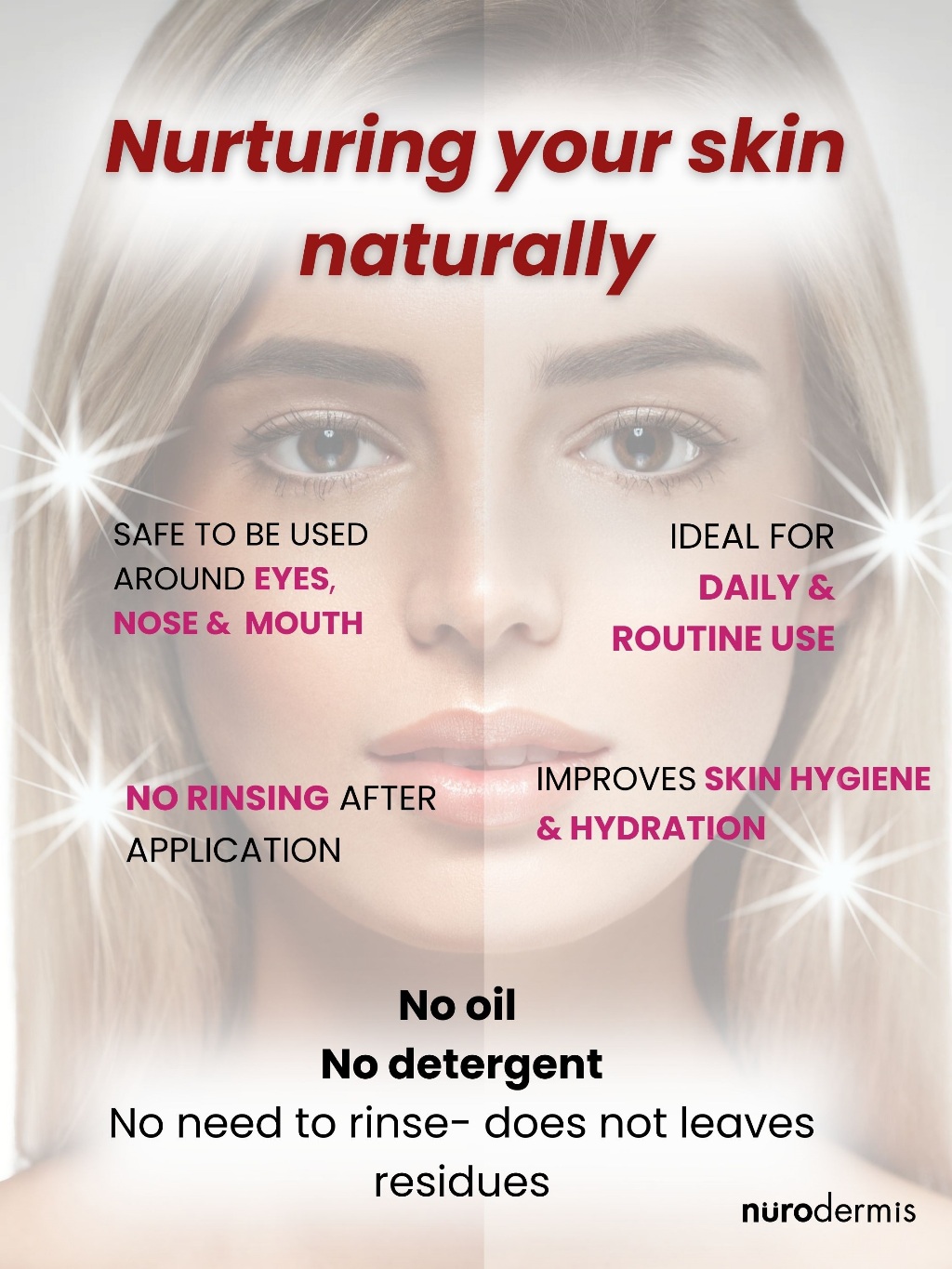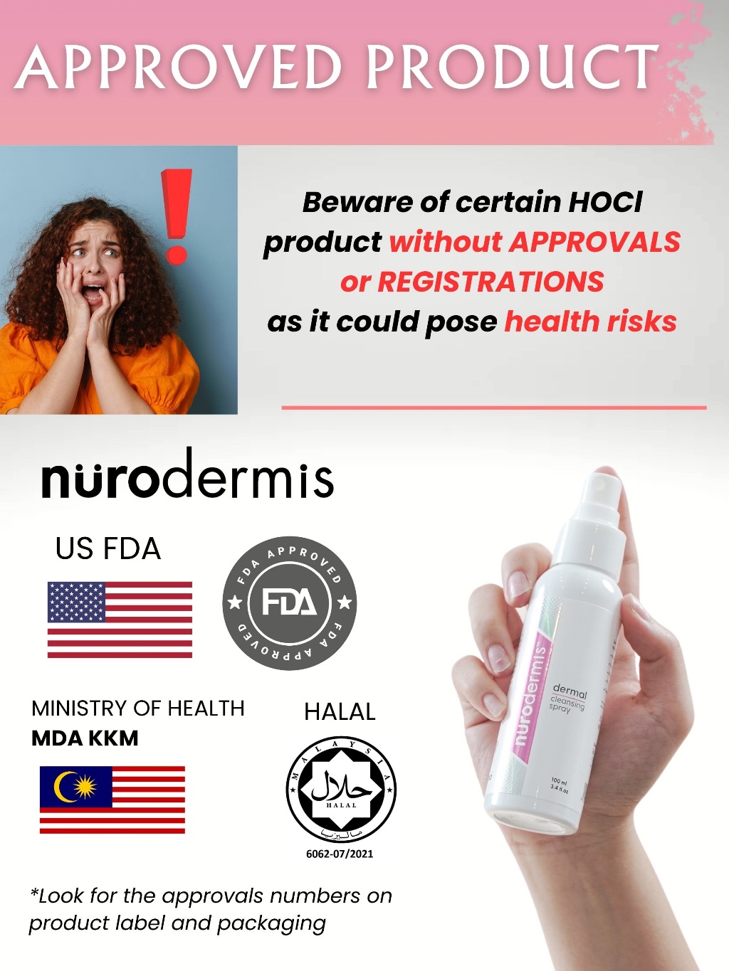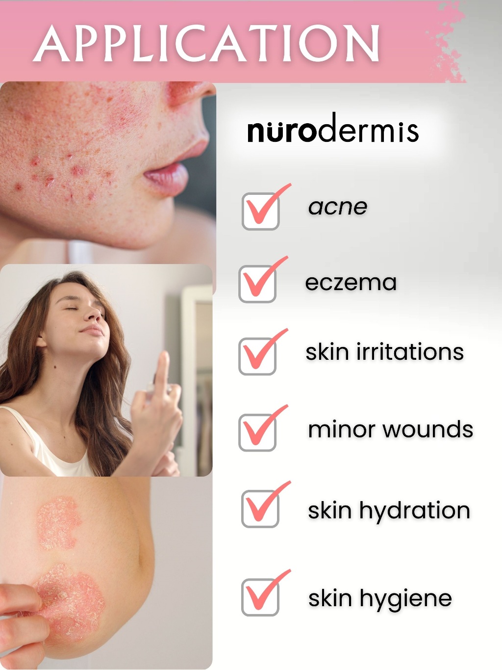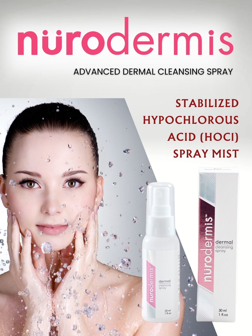 Nurodermis, dermal facial skin cleanser spray for eczema, acne, antibacterial, neutral, hypochlorous acid (HOCI)