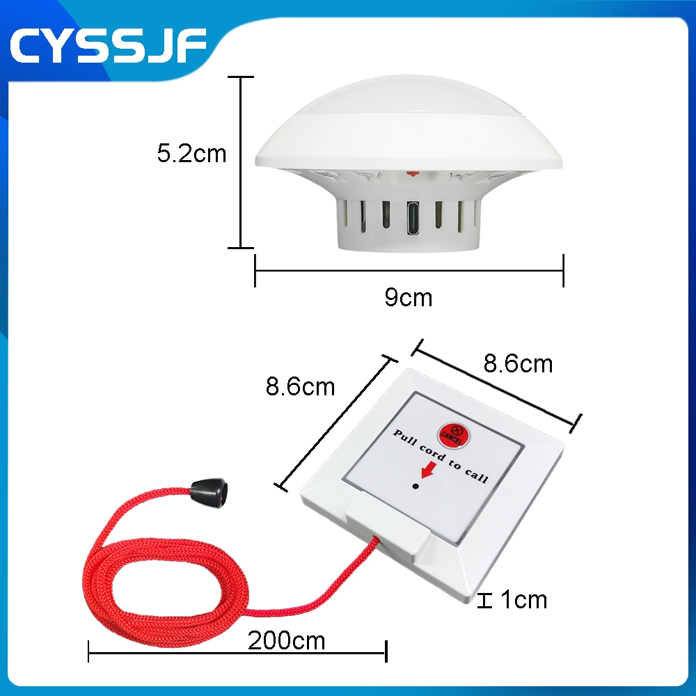 Nurse Calling Bell System Wireless Hospital Call Patient Pager Calling Button Bathroom Toilet Pull Cord Alarm for Elderly / Patient / Disabled / Personal Bathroom Bell Seniors Emergency Alarm for Elderly