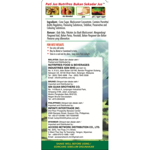 Nutrifres Blackcurrant Fruit Juice Concentrate/Cordial (1000g)