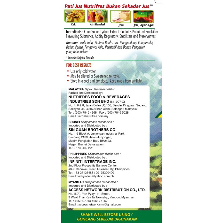 Nutrifres Lychee Fruit Juice Concentrate/Cordial (1000g)