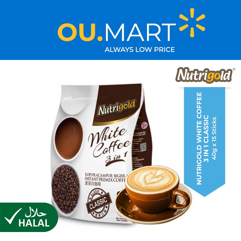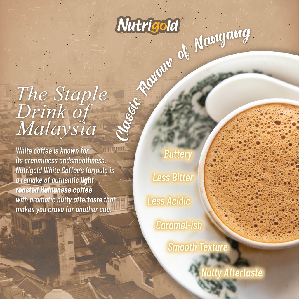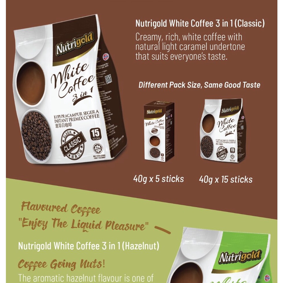 Nutrigold Instant White Coffee 3 in 1 - Classic / Hazelnut / Brown Sugar (30g x 15 sticks / Bag)