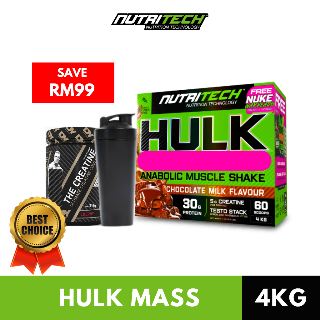Nutritech Hulk Mass Gainer 4KG | Mass Protein Shake Combo Box | Serbuk Protein Dan Karbohidrat